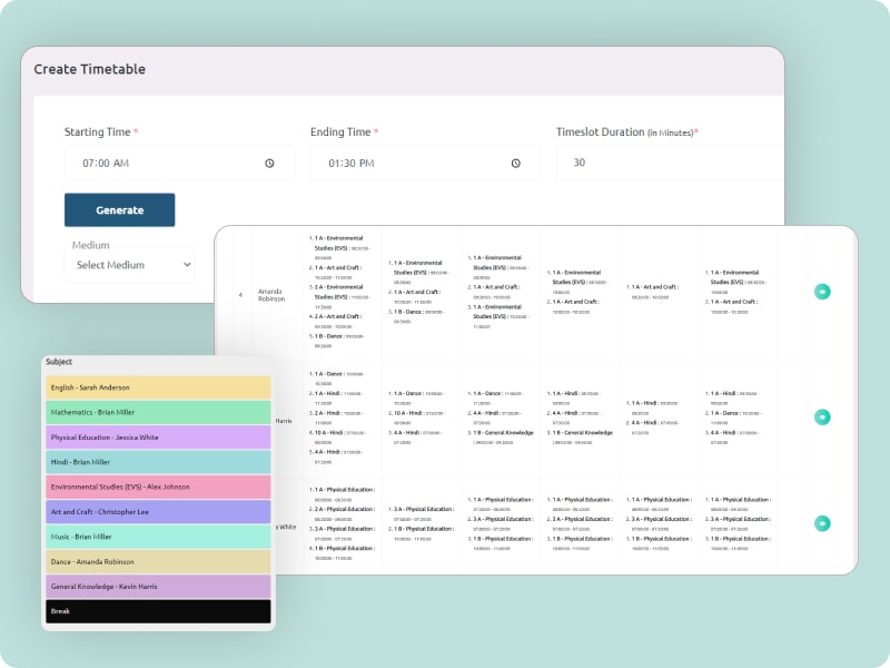 The Timetable Management module enables schools to create, update, and optimize class schedules with ease, ensuring efficient allocation of teachers, classrooms, and resources.