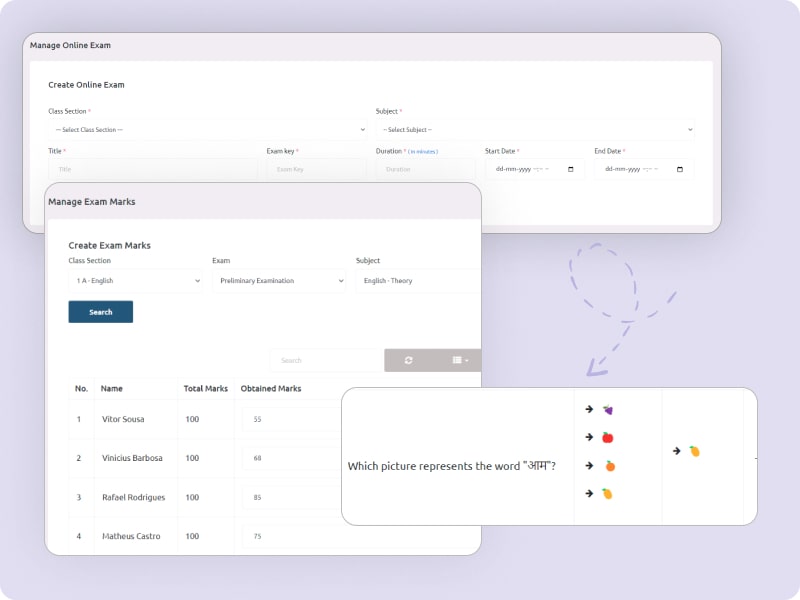 Our system simplifies exam scheduling and management by supporting both online and offline sections, allowing you to easily set up exam dates, organize assessments, and publish results efficiently and accurately, ensuring a smooth examination process for educators and students alike.