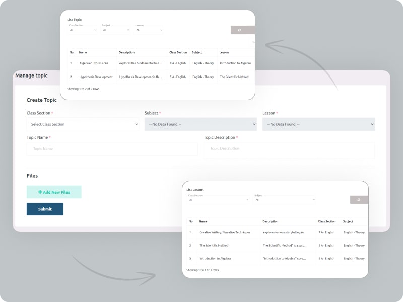 The Lesson & Topic Crafting module allows educators to easily create, organize, and customize lessons and topics, enabling structured and engaging content delivery that enhances student understanding and classroom interaction.