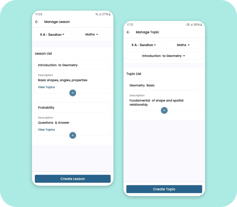 Enhance your teaching experience with our innovative application, allowing subject teachers to effortlessly manage lessons and topics with just a few clicks, making planning and delivery more efficient and effective.