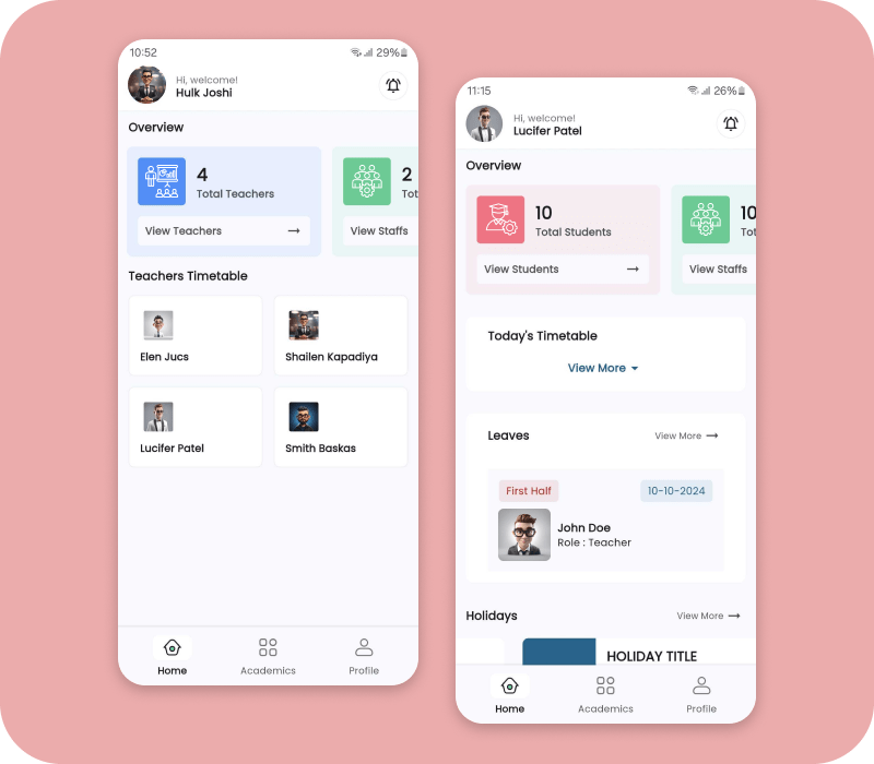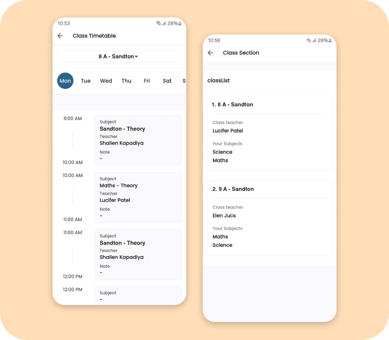 Our user-friendly interface allows you to easily access your timetable, leave details, and holiday schedules all in one place, helping you streamline your organization and stay well-informed with minimal effort.