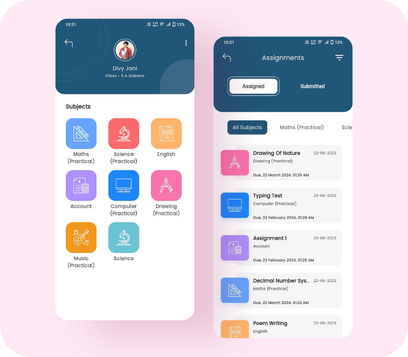 Subject Lessons and Assignments functions enable students to access lesson materials, view upcoming assignments, submit their work, and track their progress, promoting organized, accessible, and engaging learning experiences anytime and anywhere.